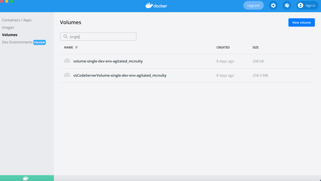 ما بسیار خوشحالیم که شما در حال آزمایش پیش نمایش محیط های Dev ما هستید و دوست داریم از شما بشنویم! با ایجاد مشکل در مخزن Dev Environments GitHub ، بازخورد خود را به ما اطلاع دهید. روش دیگر ، با ما در #docker-dev-environments کانال در Docker Community Slack تماس بگیرید. فضا ، اما وقتی با حجم زیاد سروکار دارید ، پیدا کردن آنهایی که می خواهید تمیز کنید دشوار است. در 3.6 ما پیدا کردن و مرتب سازی حجم های شما را آسان کرده ایم. اکنون می توانید حجم ها را بر اساس نام ، تاریخ ایجاد شده و اندازه حجم مرتب کنید. همچنین می توانید حجم های خاصی را با استفاده از فیلد جستجو جستجو کنید.