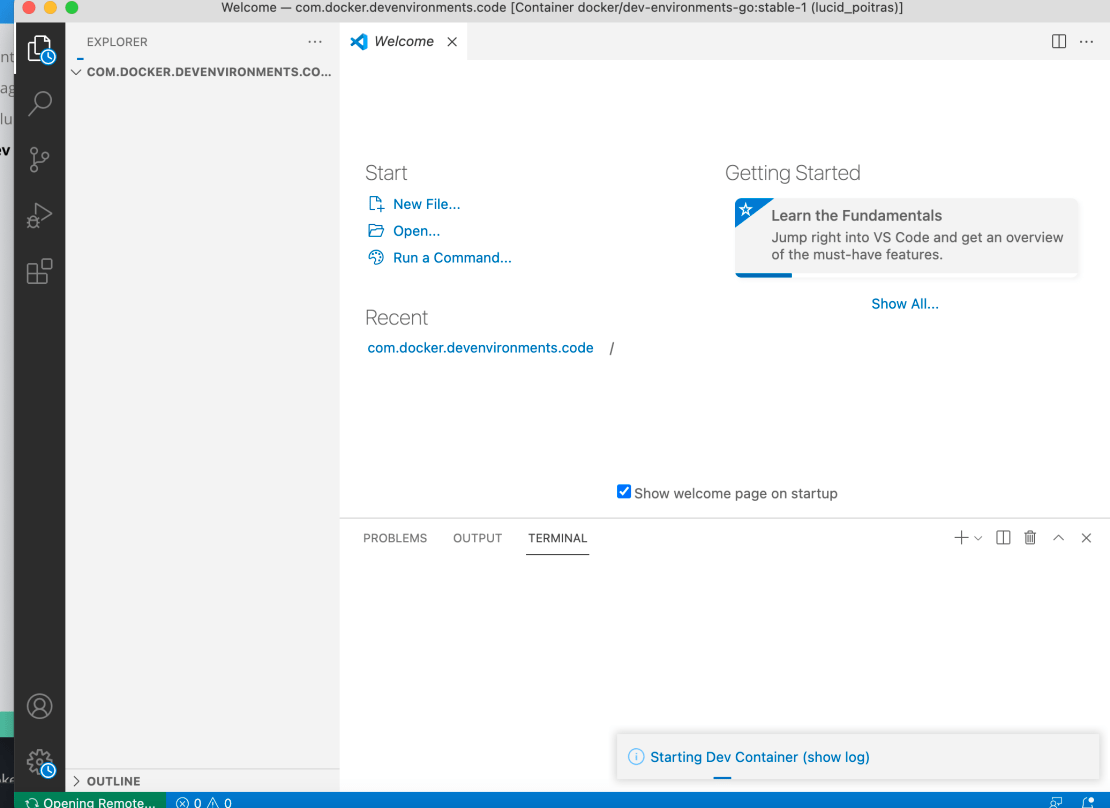 در نهایت ، ایجاد [راکلیککنید. این یک محیط Dev را با استفاده از پوشه محلی شما ایجاد می کند و کد محلی شما را در محیط Dev متصل می کند. این کد VS را درون ظرف Dev Environment باز می کند.