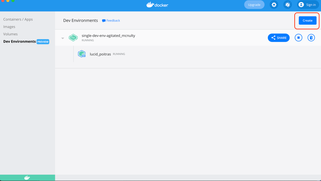 استفاده از کد محلی شما آسان است! فقط روی Create در گوشه سمت راست بالای صفحه محیط محیط dev کلیک کنید.
